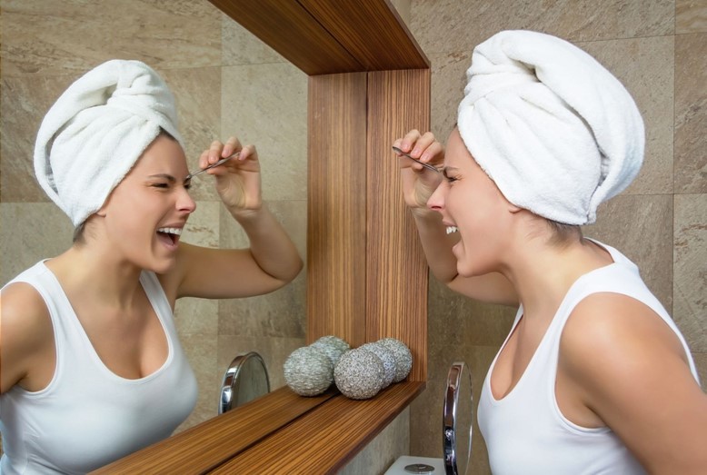 - Пинцет. Такая процедура пользуется популярностью среди женщин. Она используется как в домашних условиях, так и в салонах красоты. В отличие от карандаша, такая процедура эффективнее, требуется проделывания манипуляции раз в неделю. Выщипывать волоски рекомендуется строго по росту, во избежание врастания.