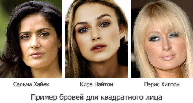 - при квадратной форме лица брови такие же, как и при круглой, отличие в месте расположения излома, в данном случае он находится ближе к середине;