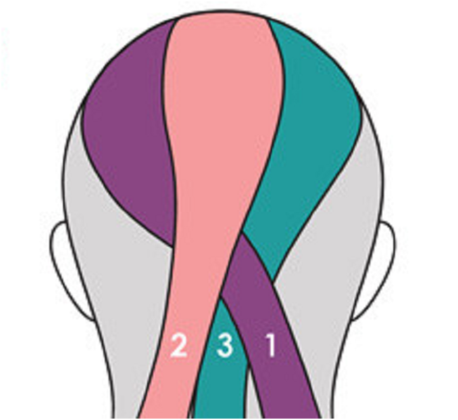 Выделяем на макушке головы на 3 прядки.