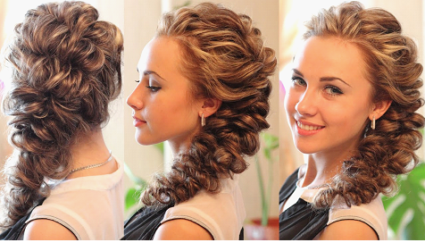 Делается множество укладок с завитыми локонами. Торжественно смотрится объемный пучок, пряди на одну сторону или различные варианты хвоста.