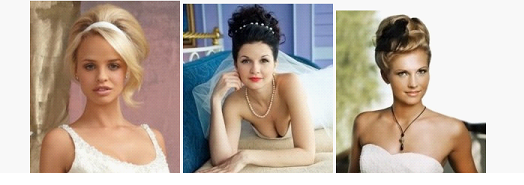 Отдельных слов достойна «бабетта» - прическа невесты на средние волосы (ретро-направление пятидесятых и шестидесятых годов). Невысокую девушку украсит свадебная бабетта, дополненная элегантной повязкой с жемчужинами, бусинками, стразами, перышками.