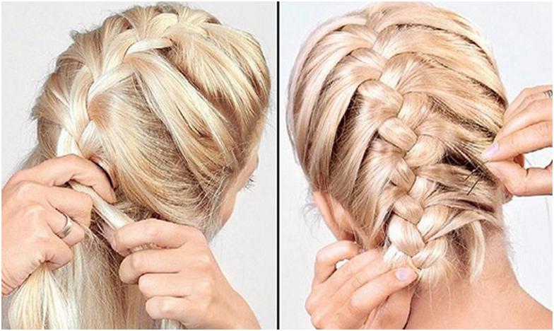 Заплетать косы на средние волосы по-французски (наоборот) можно в любом направлении. Это может быть плетение по кругу, по бокам или по диагонали.