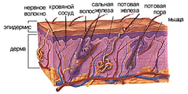 Чтобы правильно понимать происходящие болезненные процессы, давайте разберем, что собой представляет кожа с волосяными луковицами и железами, где собственно и происходит нарушение нормального процесса жизнедеятельности волос. Итак: