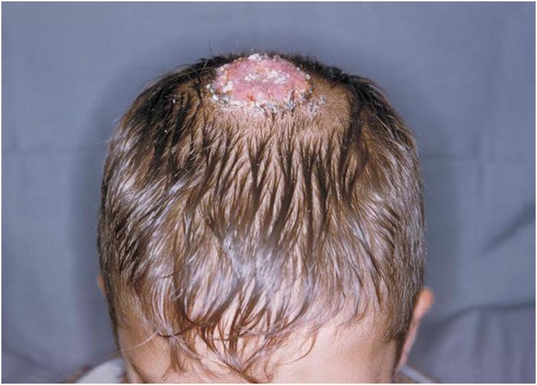 - бляшки сливаются и, отпадая, уносят с собой волосы. Одним из начальных симптомов заболевания становится перхоть и редеющие волосы без причины извне.