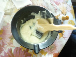 - если девушка обладает стекловидной сединой, то она окрашивает шевелюру в пропорции красочное средство-оксигент 2:1;