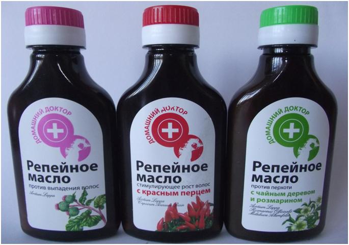- Репейное масло. Оно само по себе отлично укрепляет волосы. В аптеках часто продаются смешанные составы: с красным перцем, с луковым соком, с крапивой. Можно попробовать приготовить маску из нескольких ингредиентов: 3 ложки репейного масла, 2 ложки лимонного сока, 2 ложки меда, 2 желтка. Маску смешать, подогреть на водяной бане, нанести на волосы, укрыть пленкой и полотенцем, смыть через час.