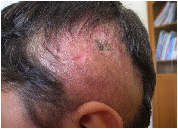 Для этого вида болезни характерно появление небольших очагов облысения, абсолютно гладких и блестящих. Здесь волосяные луковицы отсутствуют, как на поверхности глубокого шрама, рубца. Они возникают из-за какой-либо болезни: