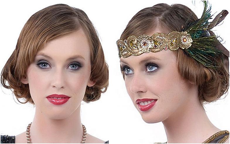 Ещё один символ 20-х годов – роскошные аксессуары для прически. Короткую стрижку с кудрявыми или прямыми волосами украшали с помощью:- тканевых ободков;
