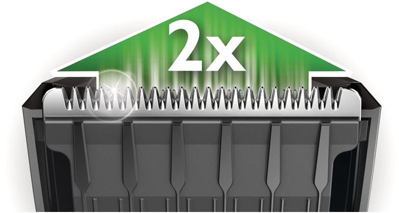 Как утверждает производитель, при создании этого прибора была внедрена модернизированная технология DualCut. Это значит, что режущий блок у изделия изготовлен с двойной заточкой, что позволяет стричь волосы практически любого типа и намного быстрее, чем это делали предыдущие машинки Philips. Эта же технология позволила уменьшить трение.