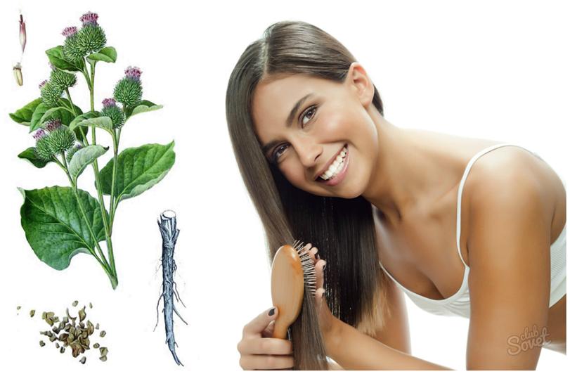 При проведении восстановления разрушенных локонов девушка пользуется корнями лопуха.