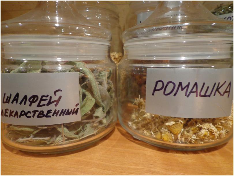 Женщина заваривает шалфейные листочки отдельно или в сочетании с иными травами — крапивными листочками, аптечными ромашками и др.