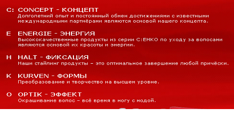 Интересный факт: В 2000-м году линия продуктов С:ЕНКО была презентована в Берлине на чемпионате парикмахерского искусства и получила отличную оценку.