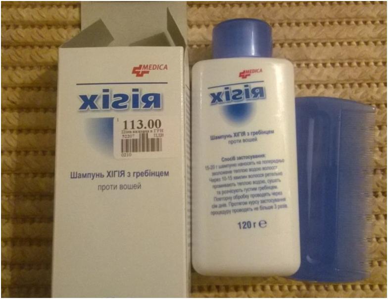 - Хигия – эффективный состав, отлично помогающий от гнид и вшей. В основе состава Перметрин. Он эффективно отравляет паразитов. Уксусная кислота же разрушает оболочку гнид. Они открепляются и смываются водой. Комплектуется гребнем, который способствует лучшему вычесыванию гнид. Уксусная кислота может вызывать раздражение – шампунь оставляют на прядях только до того момента, пока не появятся неприятные ощущения;