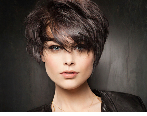 Если хочется подстричься короче, выбирайте пикси. Многослойная короткая стрижка для круглого лица с такой же чёлкой, уложенной углом, скроет недостатки. Объёмный затылок сместит акцент причёски вверх.