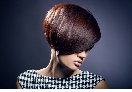 - конструкциями с многослойными чёлками, асимметрично или фигурно уложенными на лбу волосами.