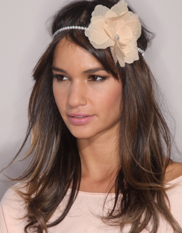 Цветочный ободок лучше смотрится с распущенными шевелюрами. Он позволяет создать романтичный повседневный образ. Крупные цветы подойдут к длинным волнистым волосам, сохраняющим объем.