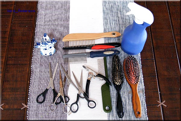 - Набор расчесок и гребней с различной частотой зубчиков. В зависимости от прически могут применяться обычные или круглые щетки, а также щетки-утюжки.