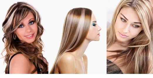Пряди подбираются различной ширины. Переход между светлой и темной частями бывает самым разным. Применяются такие цвета как бежевый, медовый, карамельный, пшеничный и коньячный.