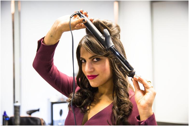 - Отделите прядь, обработайте средством для укладки и накрутите на нагретый предварительно прибор.