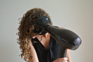 - сушит каждую прядь — поочерёдно. В подобной ситуации девушка начинает сушить шевелюру снизу и затем двигается вверх. Для придания женской шевелюре пышности и объёма, женщина взъерошивают её у волосяных корней;