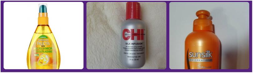 при избавлении от непослушных кудрей наносит на голову специальное разглаживающее средство и спрей для горячей укладки;