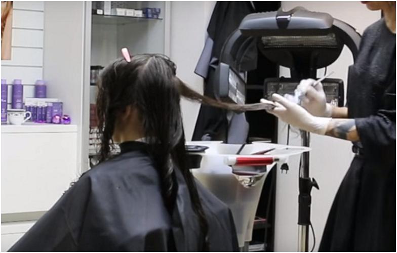 - Перед нанесением выполняется процедура глубокой очистки кожи головы и шевелюры.