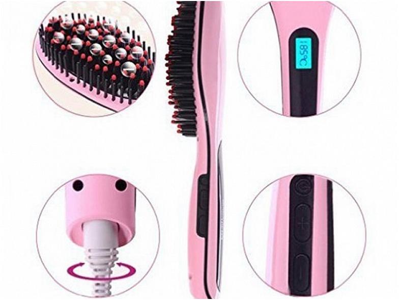 - Fast Hair Straightener представляет собой расческу и утюжок одновременно. Вы можете одновременно расчесывать непослушные волосы и выпрямлять их, не совершая лишних движений;